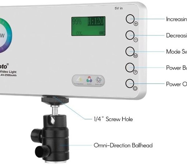 Nicefoto RGB LED Video Light TC-168 – Adjustable Color Temperature & RGB Panel for Photography & Vlogging,