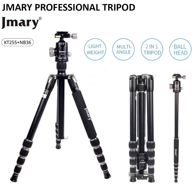 Jmary KT225 + NB36 – 5 ft Professional Aluminium Tripod & Monopod Combo with 360° Pan Head (8 kg Load)