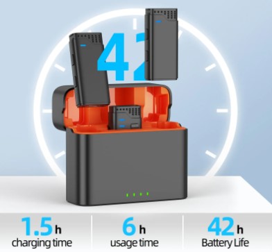 With a signal-to-noise ratio of 60dB and a response speed of ≤20ms, this microphone delivers professional-grade audio quality. The charging case provides additional power, extending your recording time significantly.