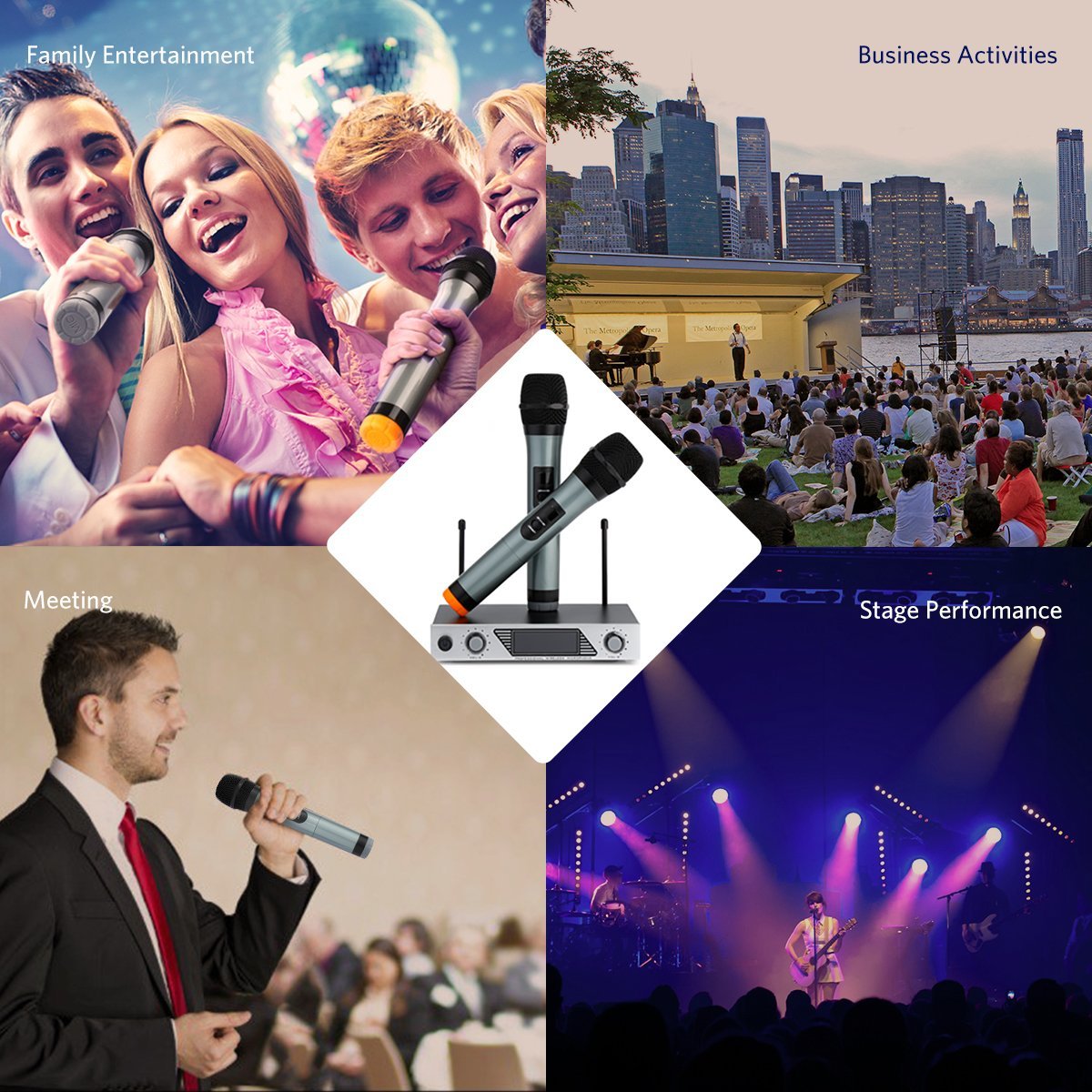 Microphones: 2 UHF Wireless