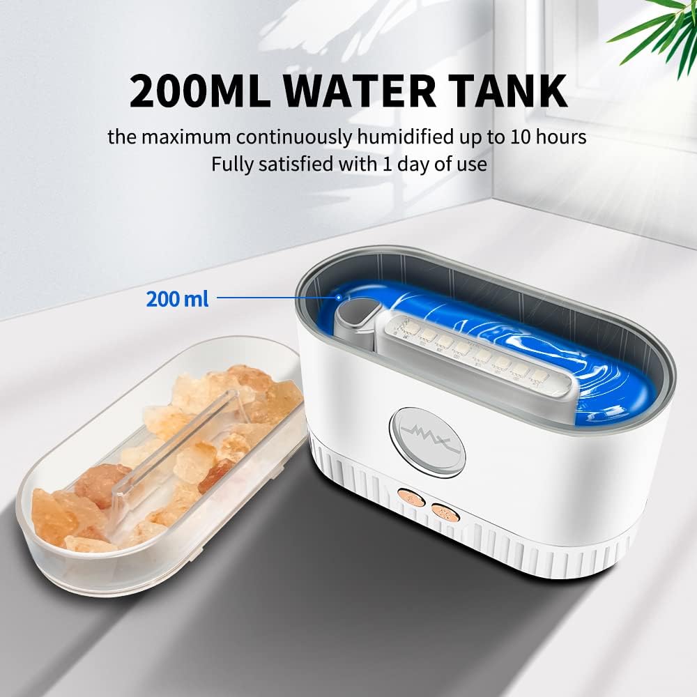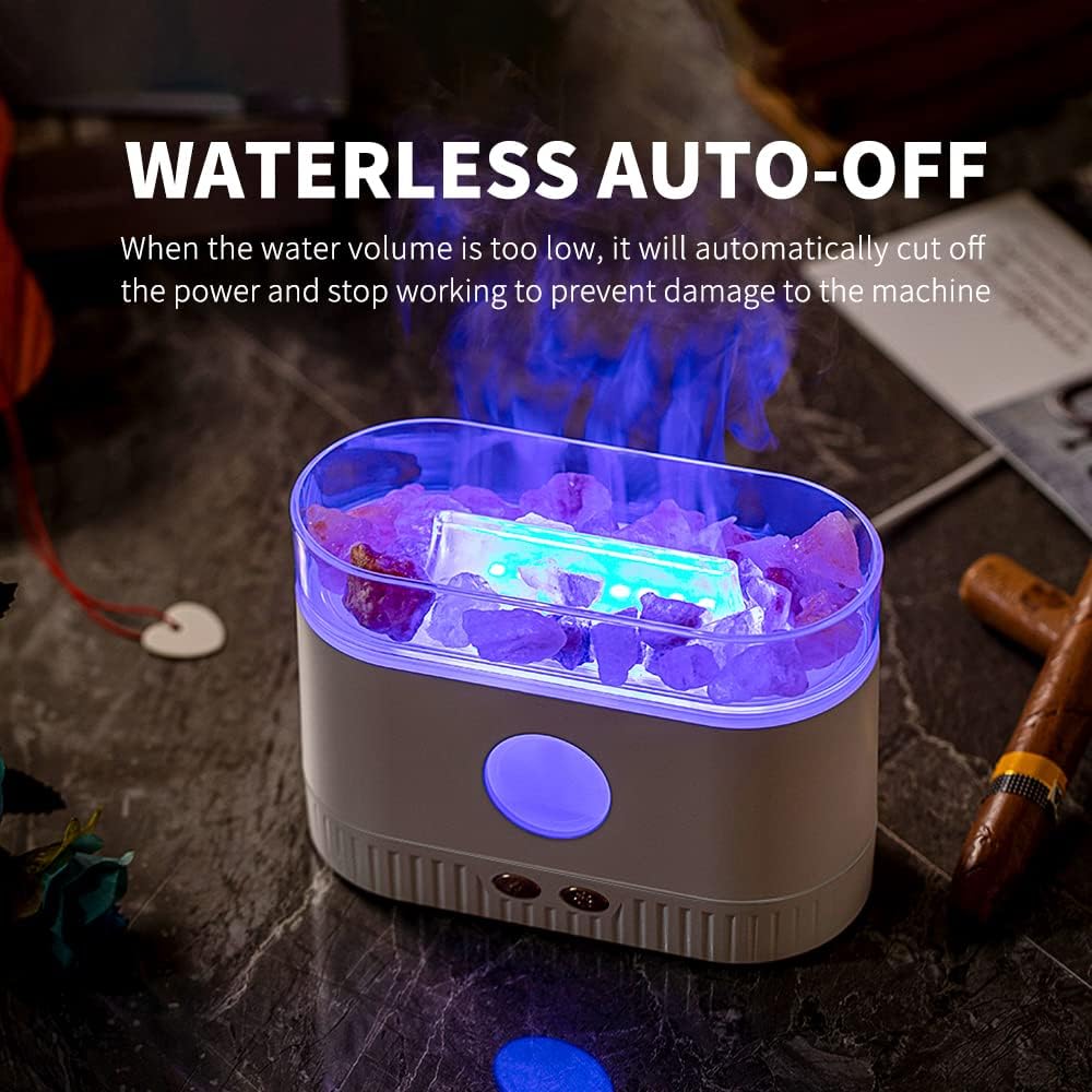 Featuring USB salt lamp diffuser power with auto shut‑off, it’s perfect for bedside placement or travel convenience. The soft amber glow of the salt rock acts as a serene salt lamp night light, creating a calming atmosphere that reduces anxiety and promotes restful sleep. Meanwhile, the ultrasonic diffuser supports up to 160 mL of water for continuous mist, acting as a gentle air purifier salt lamp and humidifier.
