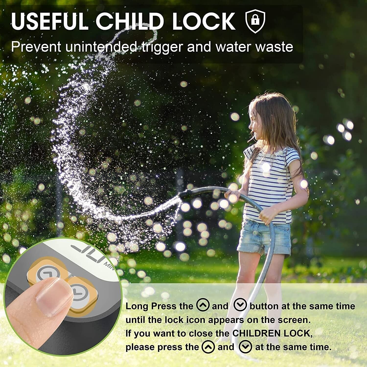 The automatic irrigation controller features a rain delay function, preventing overwatering during rainy periods. Additionally, the manual override option allows for on-demand watering, providing flexibility for unexpected dry spells.