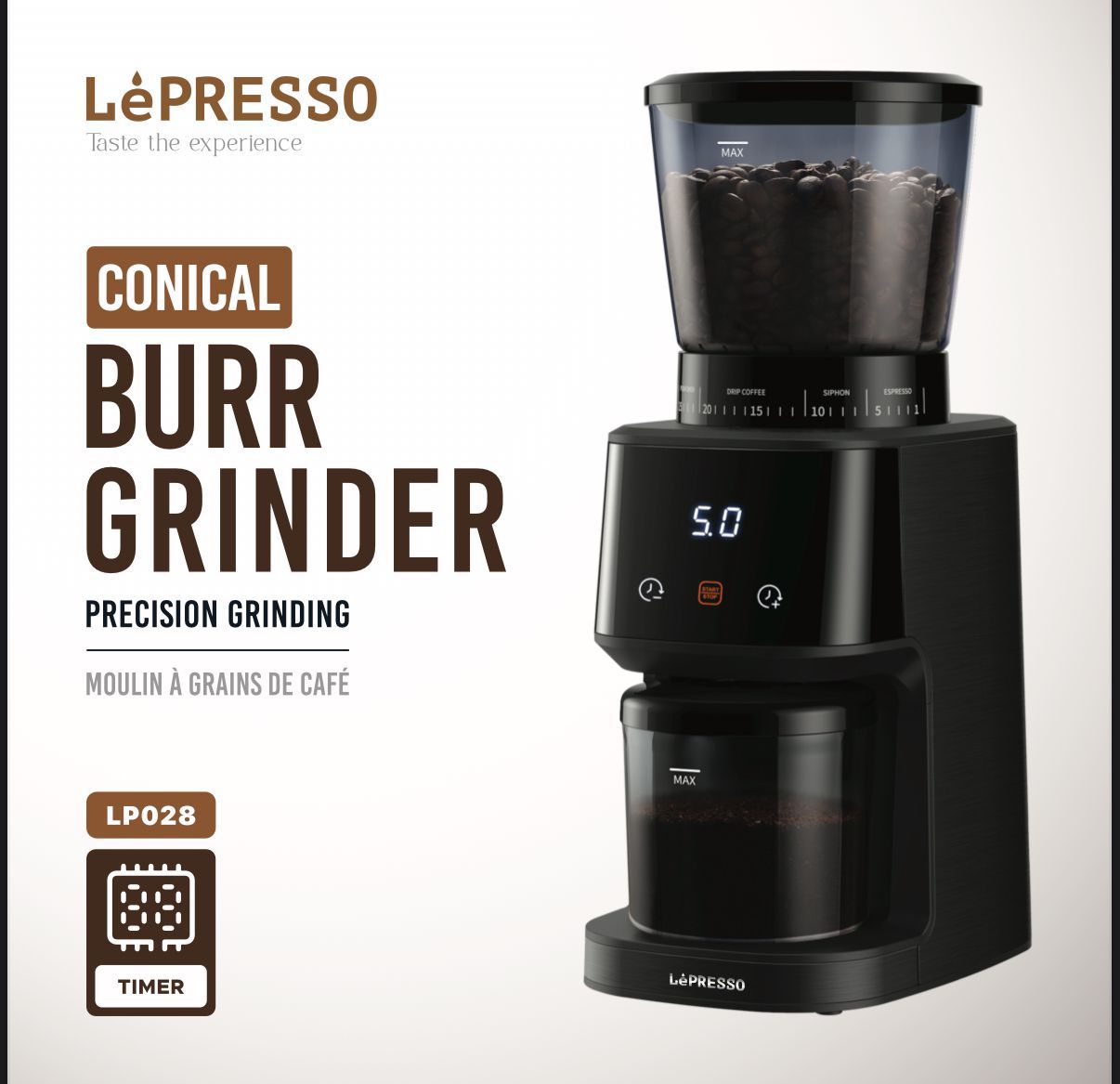 Lepresso Conical Burr Grinder LPCFFM0028 – Premium Electric Coffee Grinder for Perfect Ground Coffee