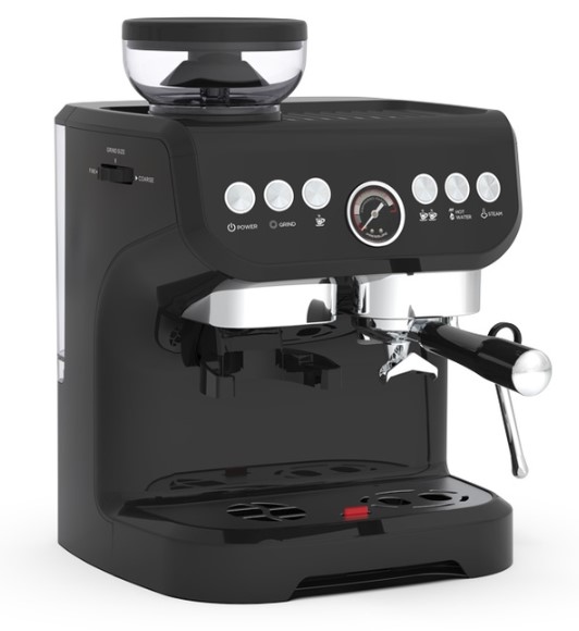 LePresso LECMBGBK Semi-Automatic Espresso Machine – 19 Bar Pump, Integrated Grinder, Milk Steamer, 2L Capacity,
