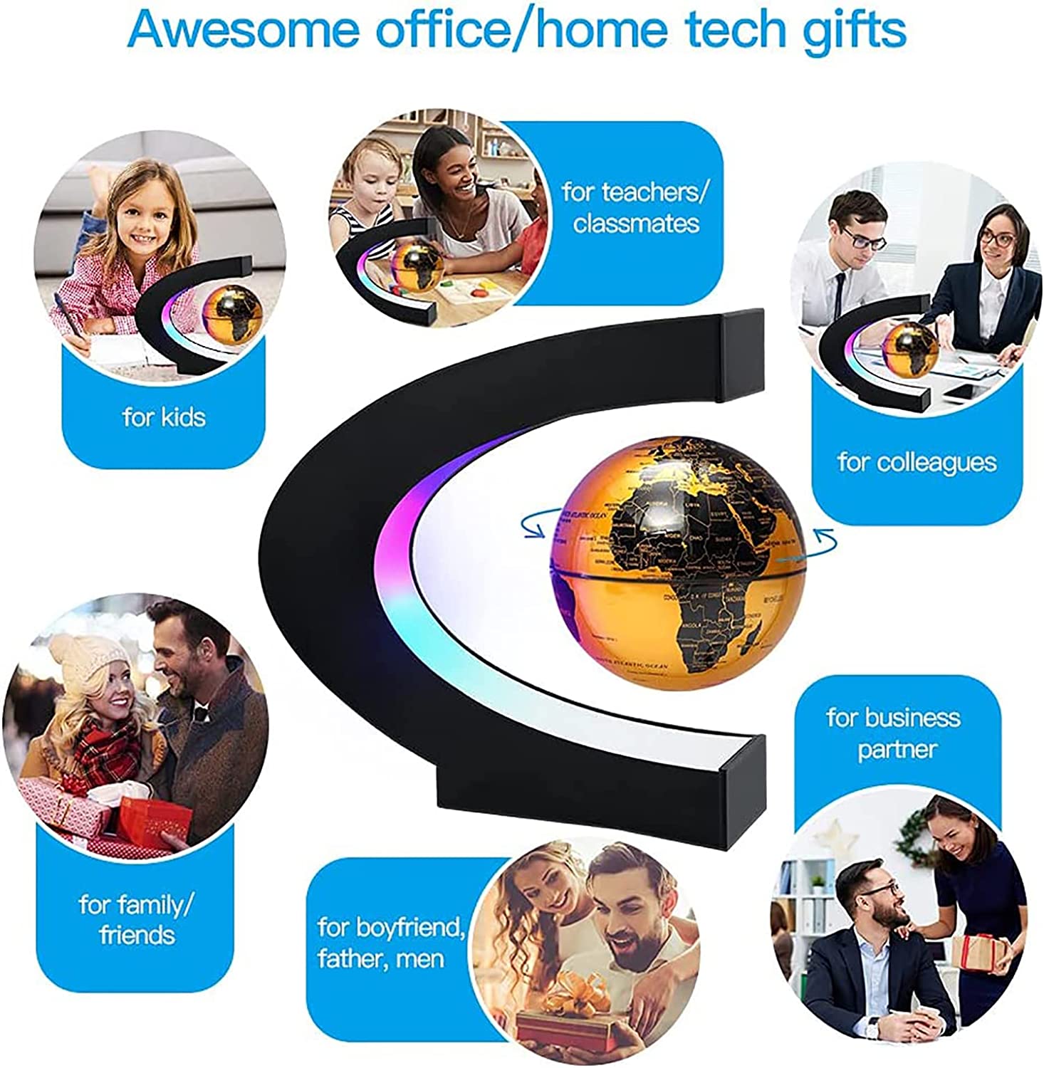Magnetic Floating Globe Decoration – C‑Shape LED Levitating World Map Globe –