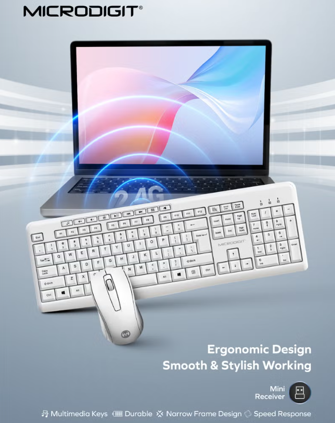 Microdigit MD325WK 2.4G Wireless Multimedia Keyboard + Mouse Combo in Oman
