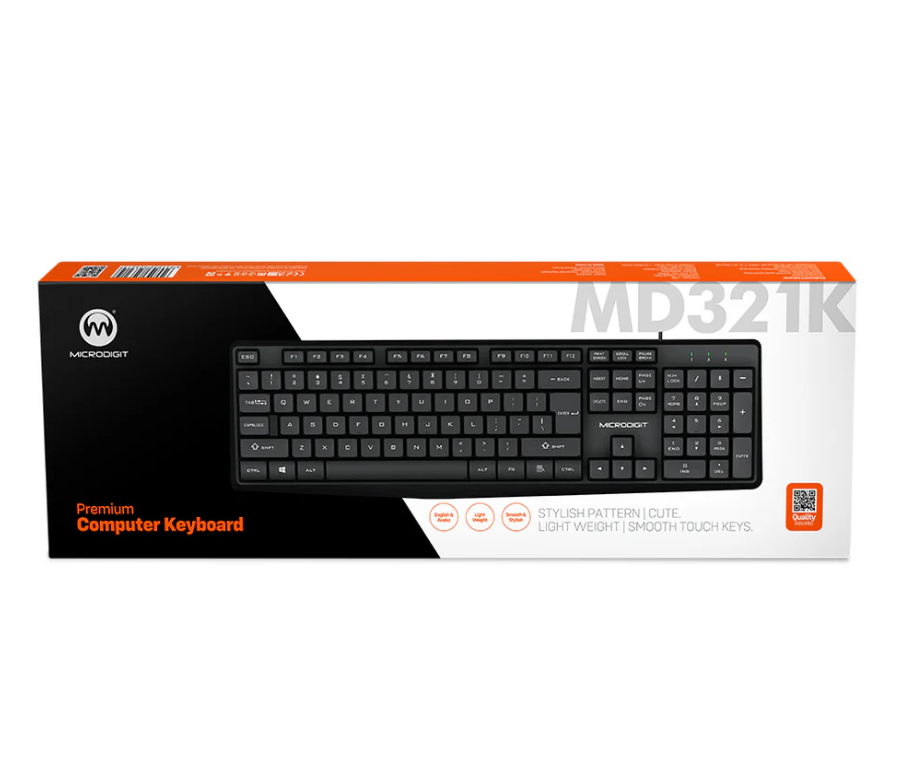 Microdigit Premium Computer Keyboard MD321K – Wired USB Full-Size Keyboard (English/Arabic)