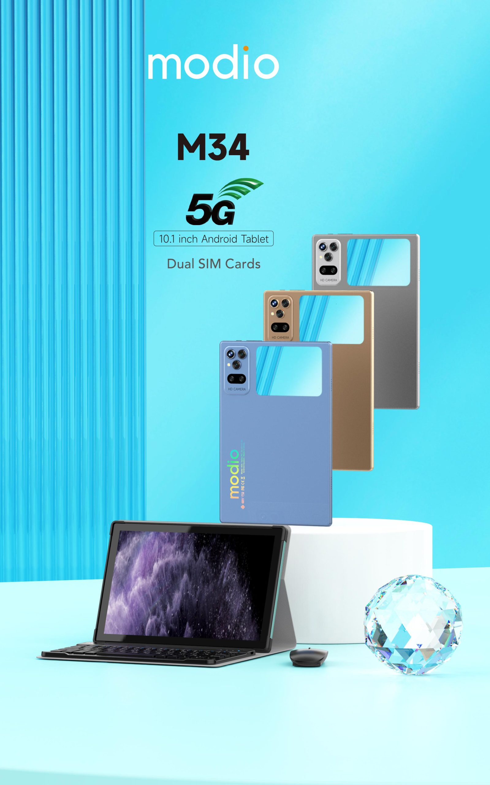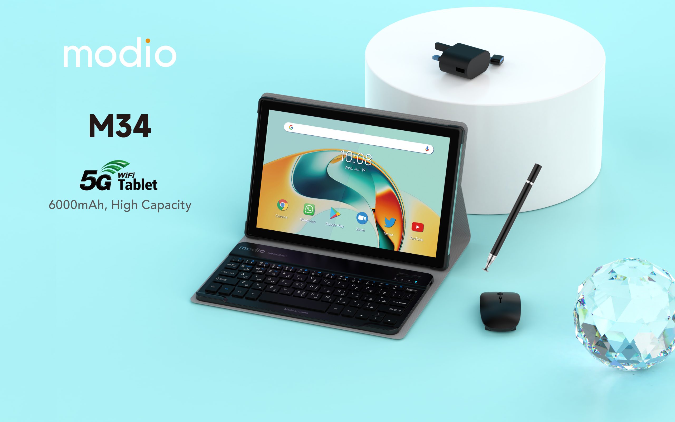Modio M28 5G Android Tablet – 10.1″ HD Display, 8GB RAM, 512GB Storage, Dual SIM, 6000mAh Battery, with Keyboard, Mouse & Touch Pen –