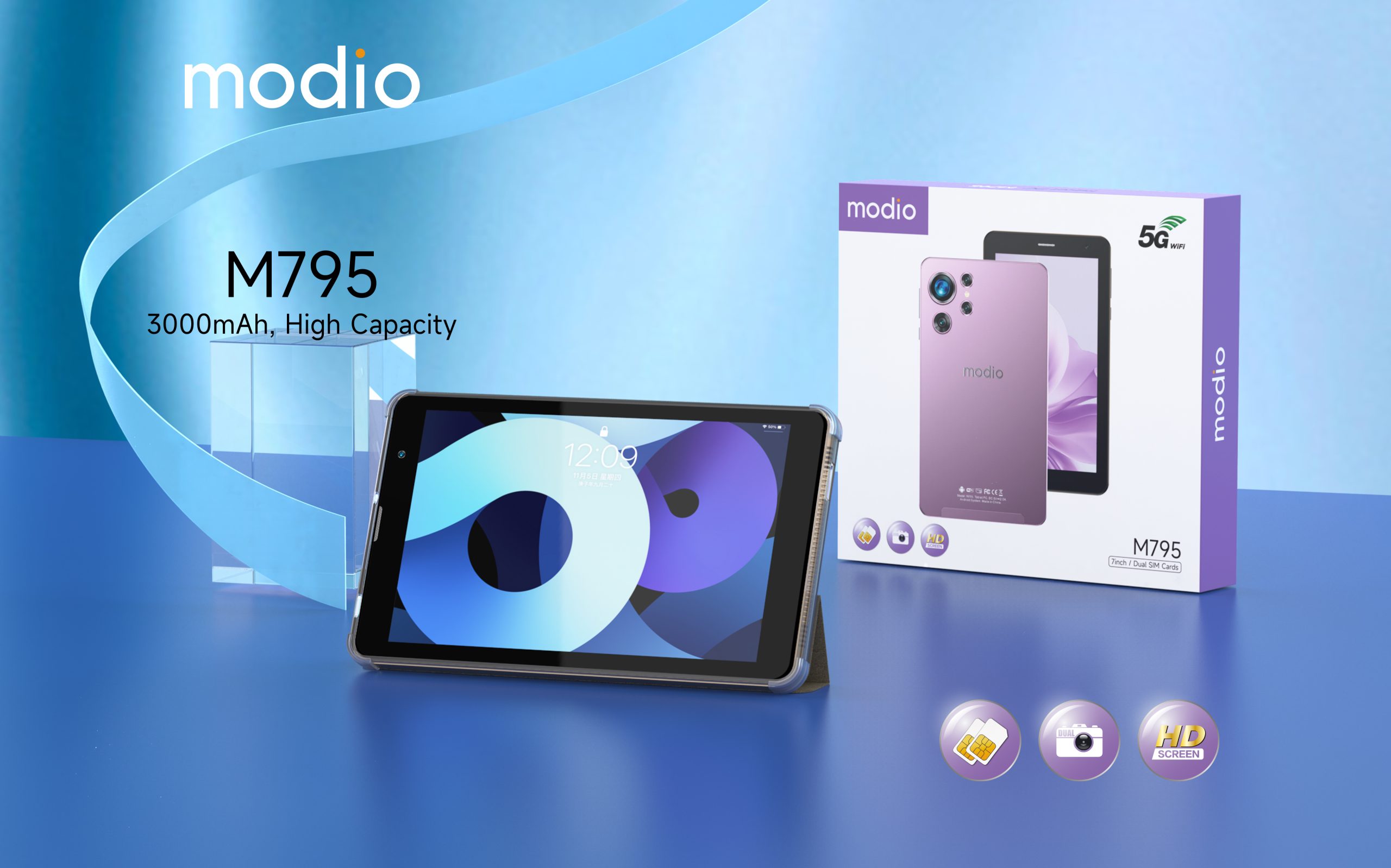 Modio M795 7″ Android Tablet – 6GB RAM, 256GB Storage, Dual SIM, 5G WiFi, 3000mAh Battery