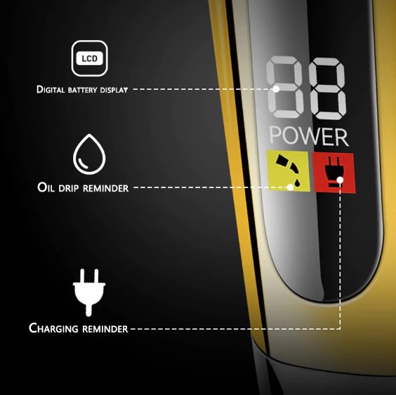 The LCD display provides real-time battery status, ensuring you’re always prepared. With a USB charging capability, it offers convenience, allowing you to charge it via various devices. The ergonomic design ensures a comfortable grip, reducing hand fatigue during extended use.