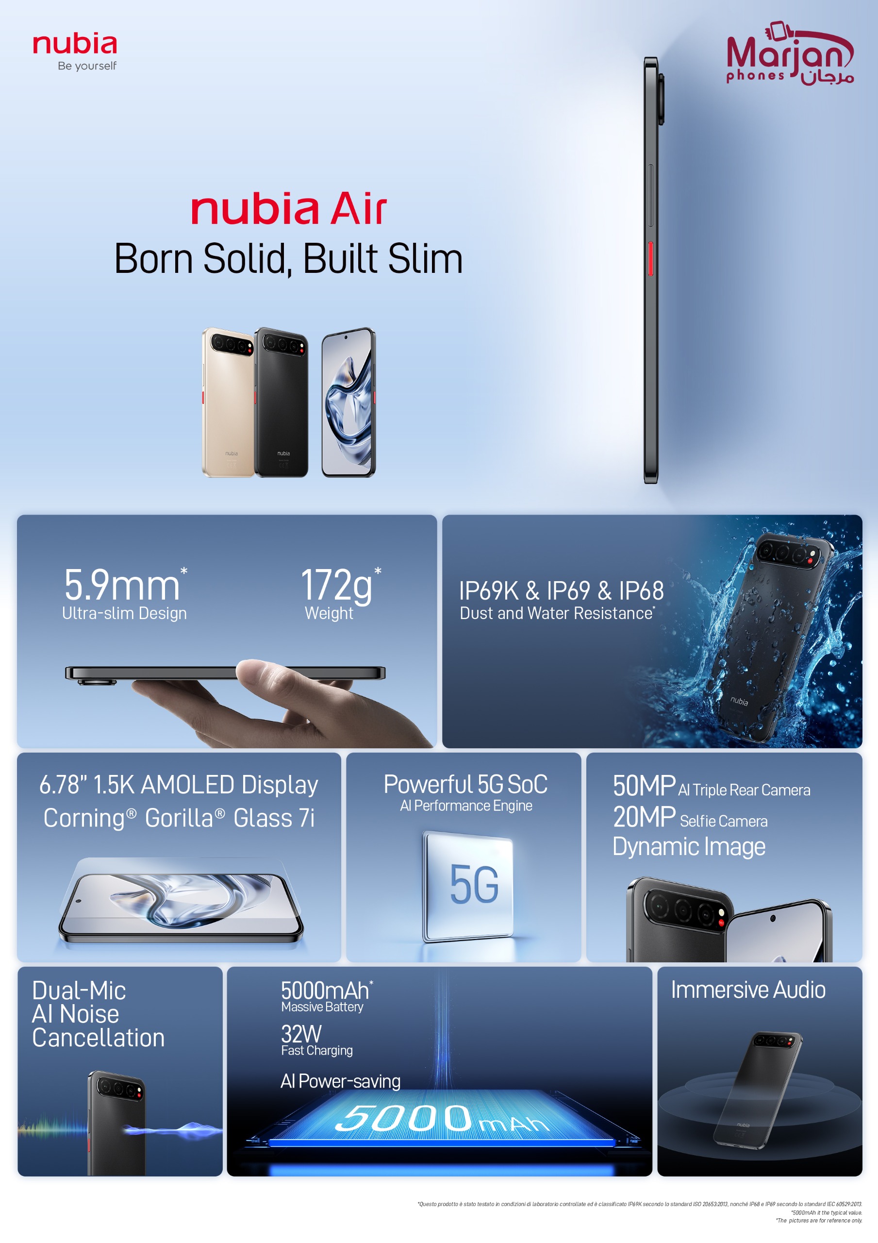 Nubia AIR-20 Smartphone – 20GB RAM (8 + 12), 256GB Storage, High-Performance Android Phone