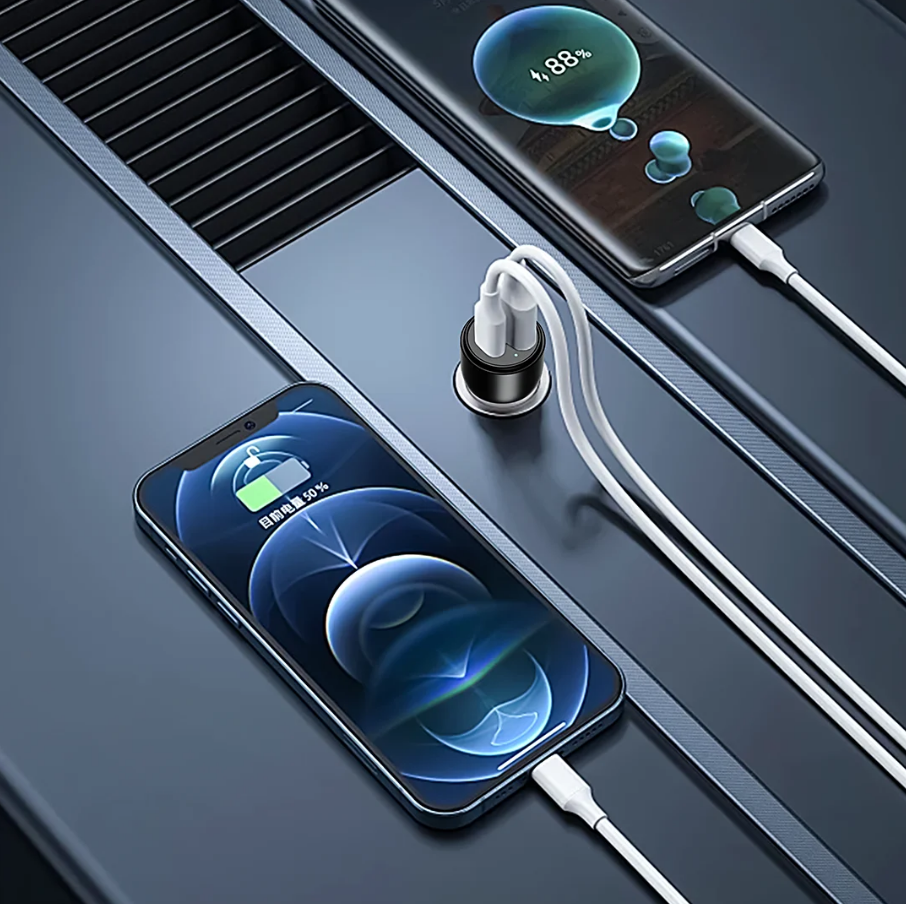 Stay powered up on every journey with the Dual Port PD + QC 51W Solid Car Charger in Oman, designed for ultra-fast, safe, and reliable dual-device charging.