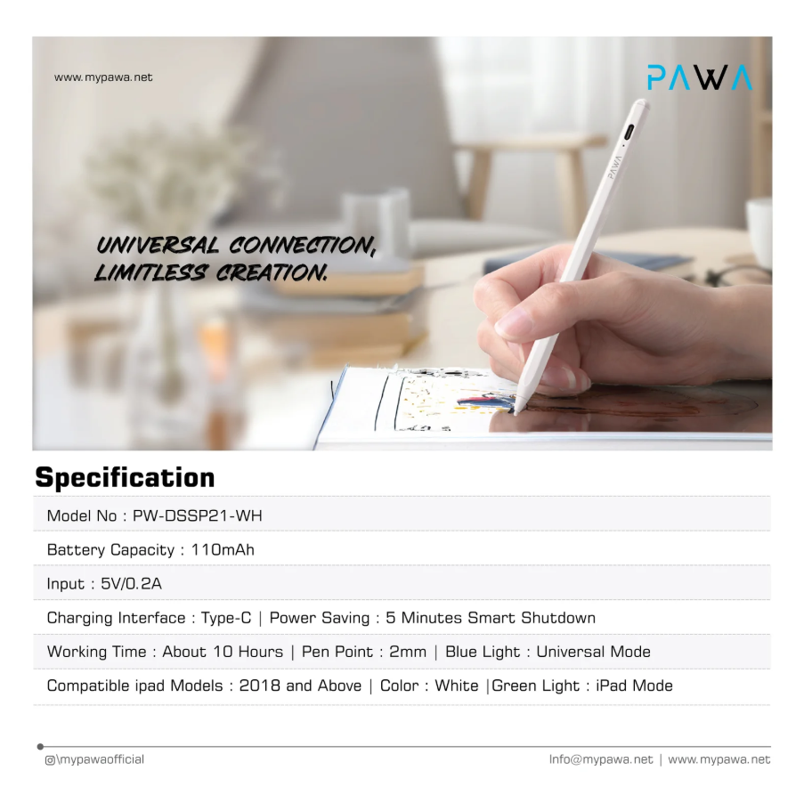 Enhance your digital creativity with the Smart Pencil with Palm Rejection in Oman by Pawa Dual System DSSP21. Designed for precision, comfort, and smooth performance, this smart pencil is perfect for drawing, note-taking, and everyday use.