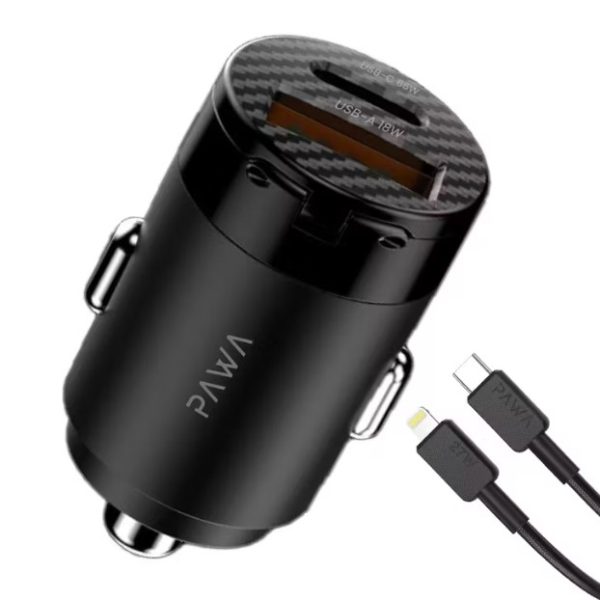 Pawa Supermini 65W Dual Port Car Charger with PD & QC Ports + Braided Type-C to Lightning Cable (PW-PDTCN65L)