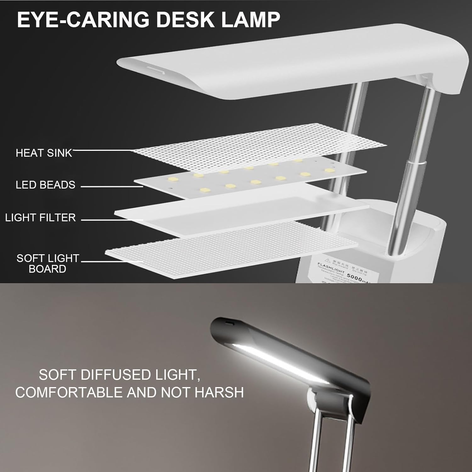 Lamp run time: Desk lamp 7–8 hours (max); Torch 6–8 hours (max).