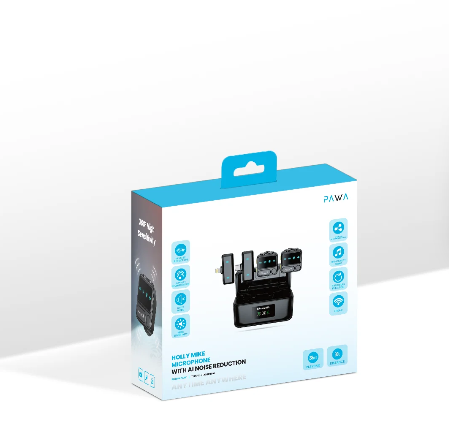 Equipped with both Type-C and Lightning connectors, the Pawa Holly Mic Oman is compatible with a wide range of devices including iPhones, iPads, and Android smartphones. Whether you’re recording a podcast, vlog, interview, or YouTube video, this portable microphone Oman delivers studio-quality sound with convenience and style.
