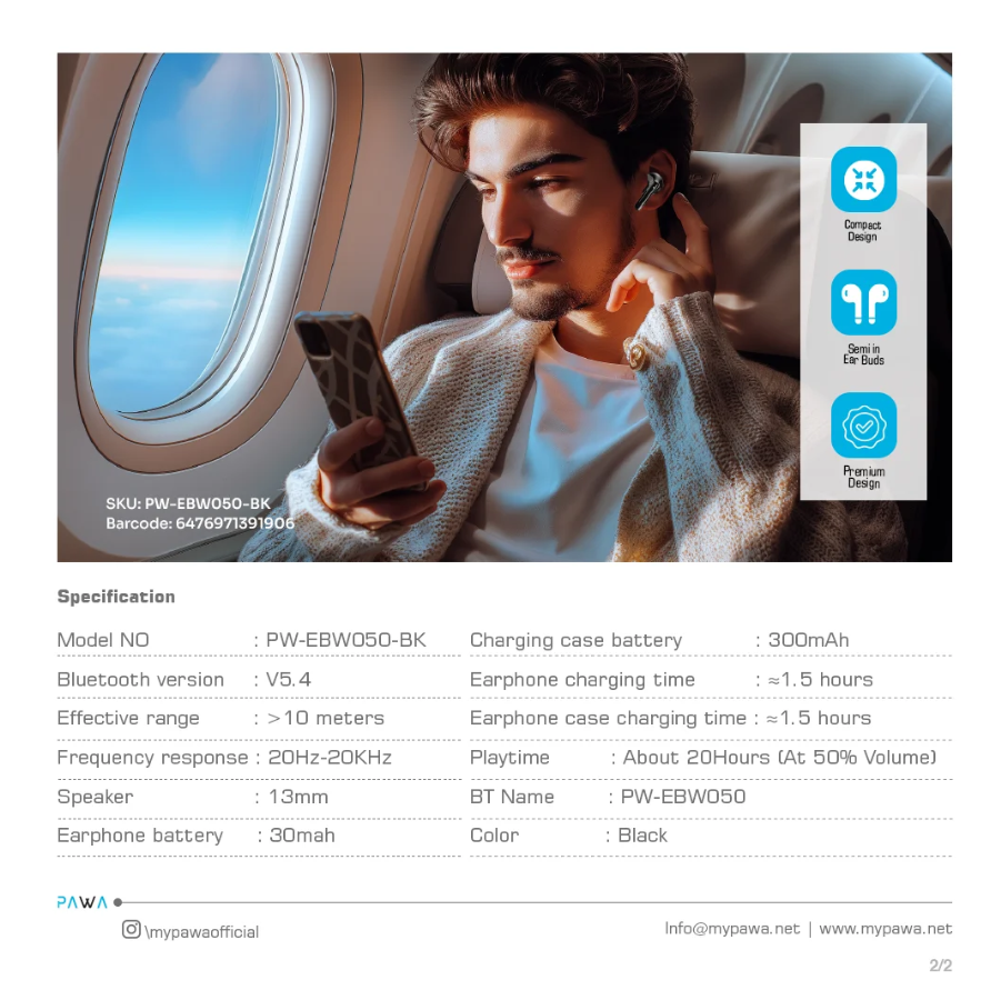 Enjoy clear audio and all-day comfort with the Wireless Earbuds in Oman, designed for seamless listening and everyday convenience. The Pawa Limpid Pro PW-EBW050 offers a semi-in-ear design for a natural fit and immersive sound experience.