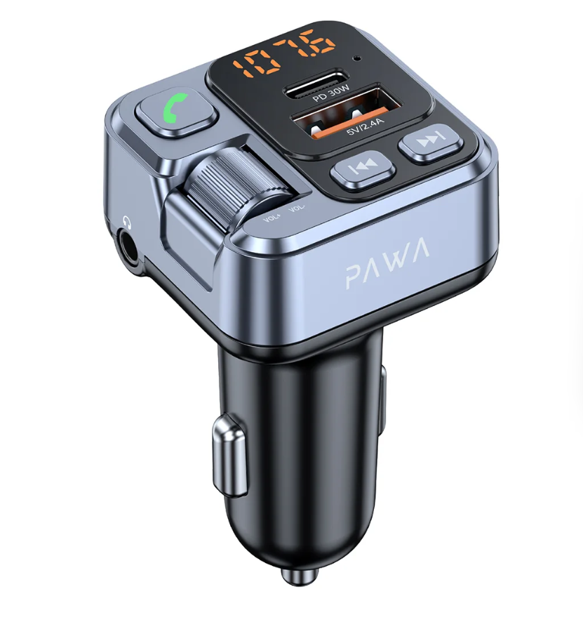 Pawa Wireless FM Transmitter Car Charger (16PD30) — Bluetooth, PD30W Fast Charging, Dual USB