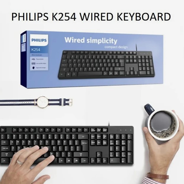 Philips Wired Keyboard K254 – USB Membrane, 104 Keys, Spill-Resistant –