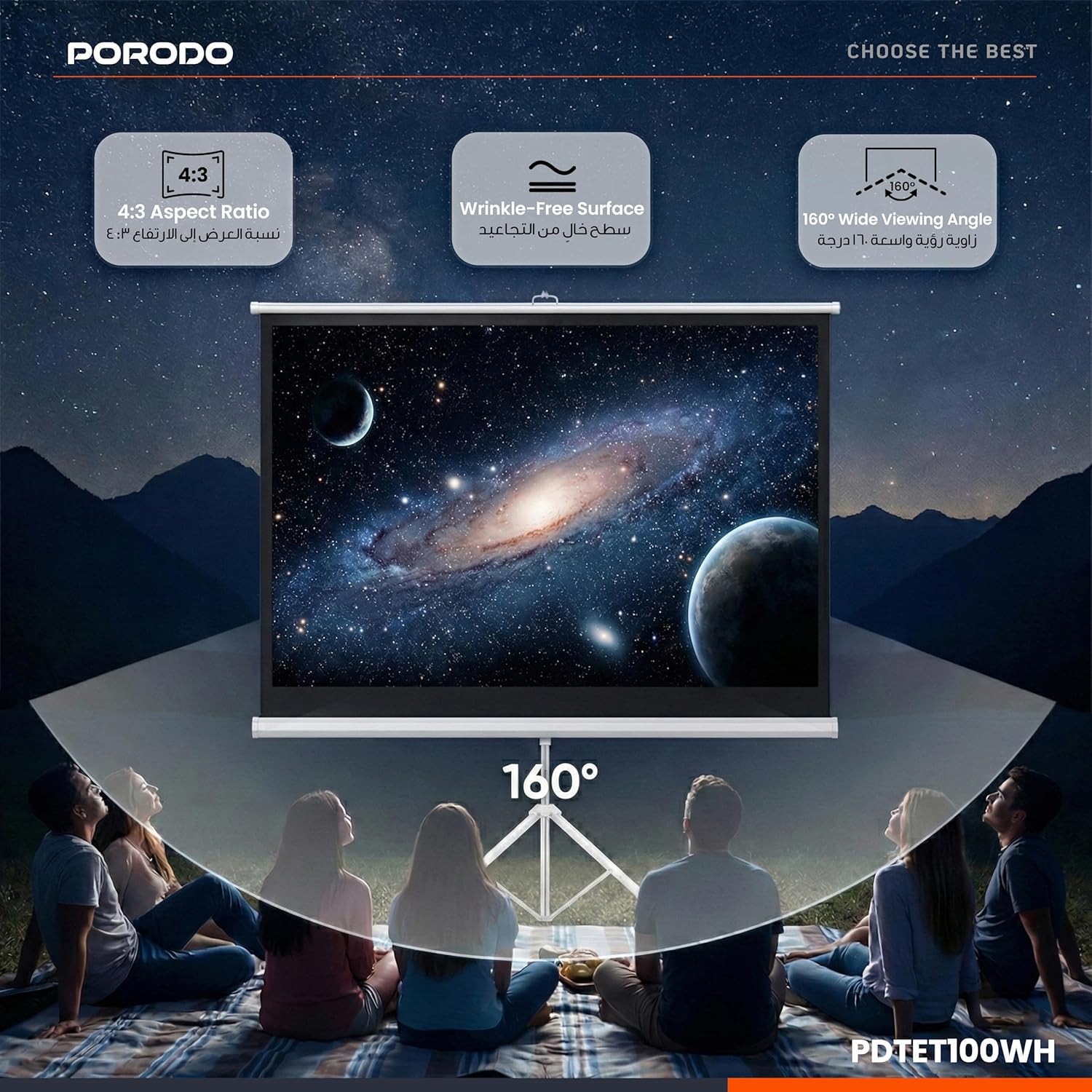 Porodo 100” Tripod Projection Screen in Oman – Portable Home Cinema Display