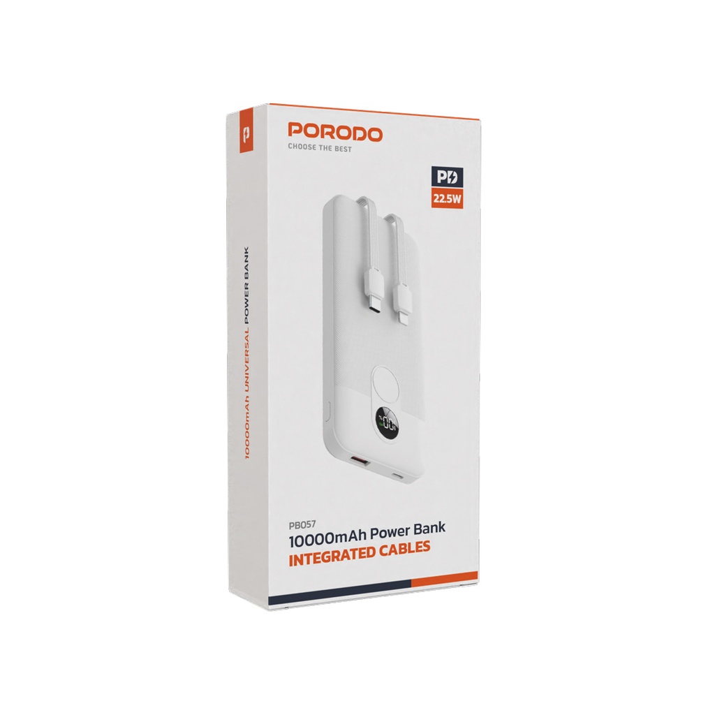 Porodo 10000mAh Power Bank PD 22.5W with Integrated Type-C & Lightning Cables – PB057