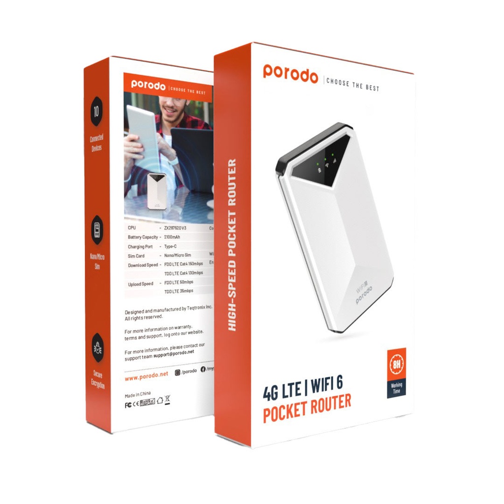 With its sleek design and robust performance, the Porodo 4G LTE WiFi 6 Pocket Router is your perfect companion for uninterrupted internet access in Oman.
