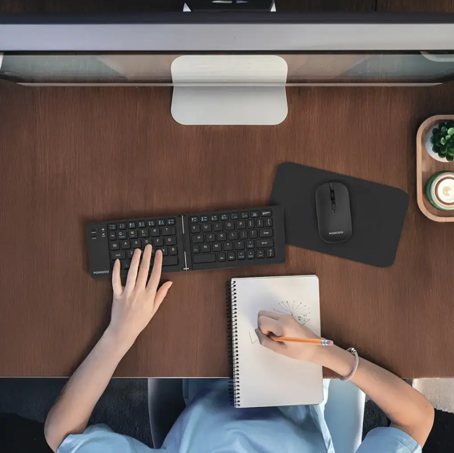 Porodo 6-in-1 Keyboard & Mouse Set PDKBMSC2285 – Foldable Keyboard, Wireless Mouse, Phone Stand & Travel Case