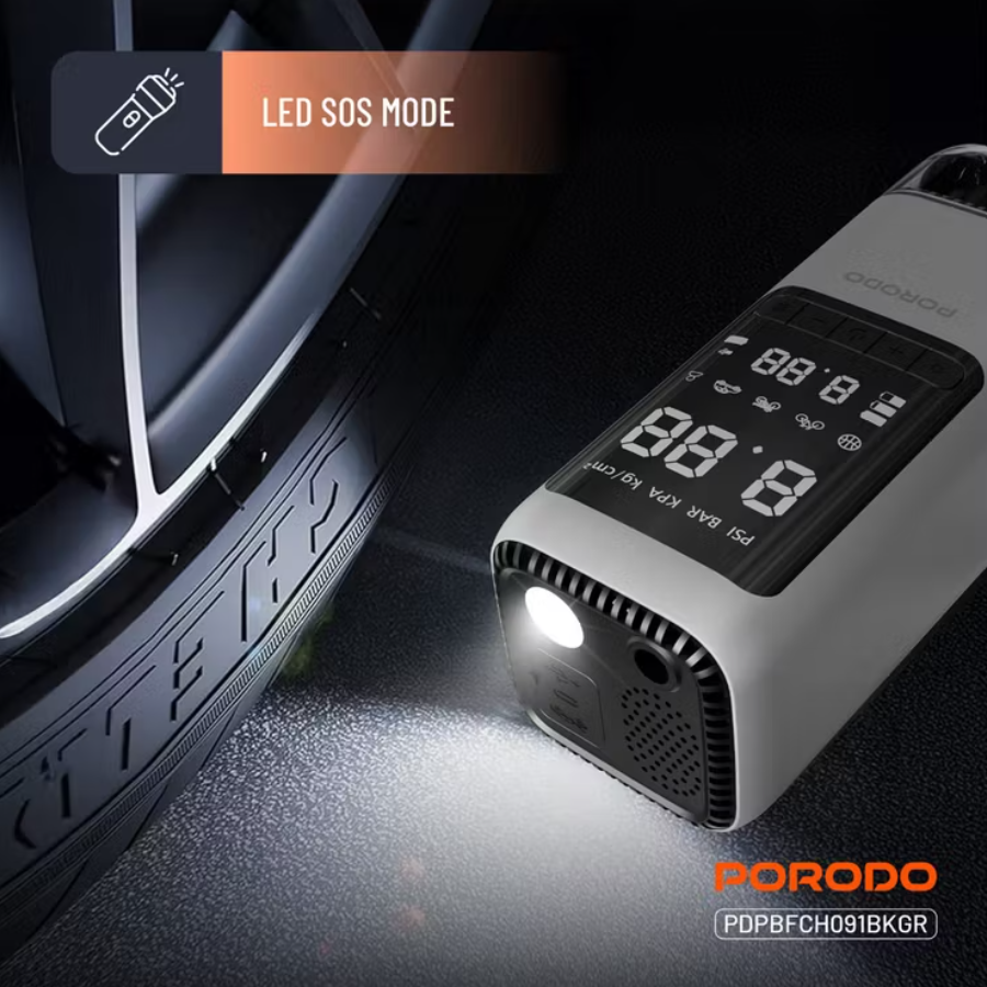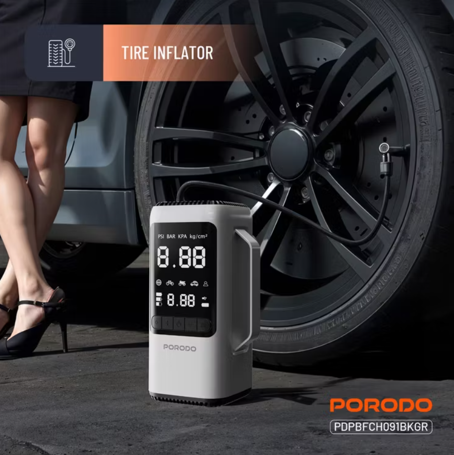Porodo 6 in 1 Multifunction Jump Starter with Air Compressor & Power Bank PDP-CH091-BKGR – Car Emergency Tool – Price in Oman
