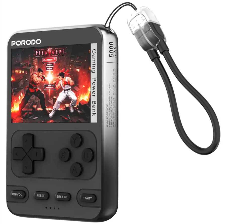 Porodo Arcadevolt 5000 mAh MagSafe Power Bank PDPBXH003BK – 20 W Fast Charge, 15 W Wireless & Built-In Game Console
