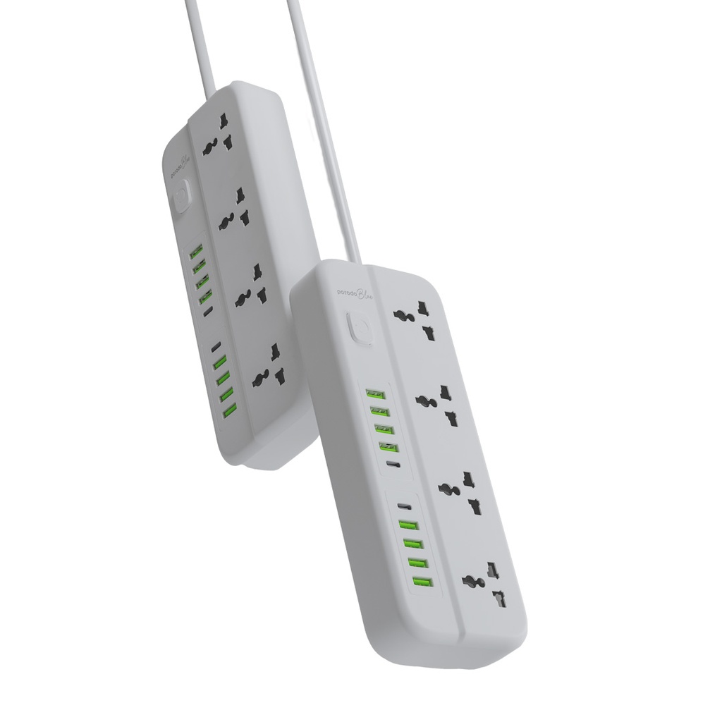 Elevate your charging experience with the Porodo Blue 4-Socket Power Strip (PB-4ACPS2C8A-WH), a versatile solution designed for homes and offices in Oman. This Porodo power strip features 4 universal AC sockets, 8 USB-A ports, and 2 USB-C ports, allowing you to charge multiple devices simultaneously.
