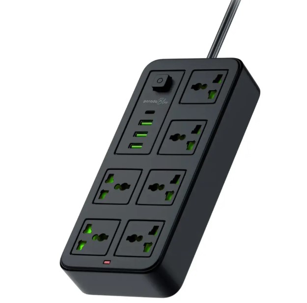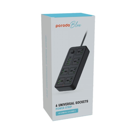 Upgrade your power solutions with the Porodo Blue 6-Port Power Socket (PB-6ACPS1C3A-BK), designed to meet the diverse charging needs of homes and offices in Oman. This Porodo power strip features 6 universal AC sockets, 3 USB-A ports, and 1 USB-C port, allowing you to charge multiple devices simultaneously with ease.