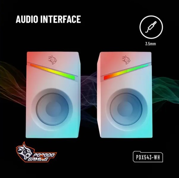 Porodo Gaming Stereo Speaker with Volume Knob Control and RGB Lighting – PDX543