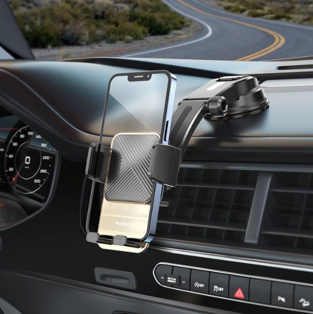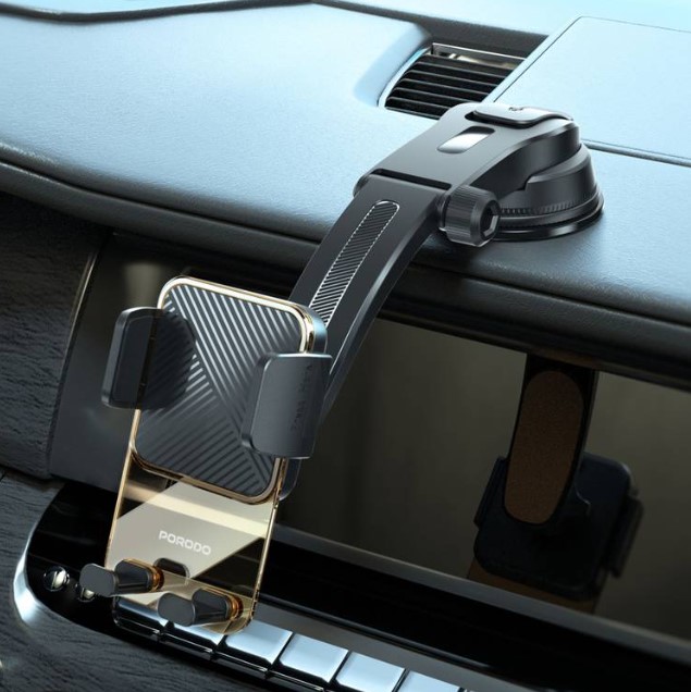 Crafted with high-quality materials, the Porodo HS06 features an extended base for added stability and a transparent design that complements any interior. Its strong adhesive ensures a firm hold on various surfaces, making it ideal for both car dashboards and office desks.