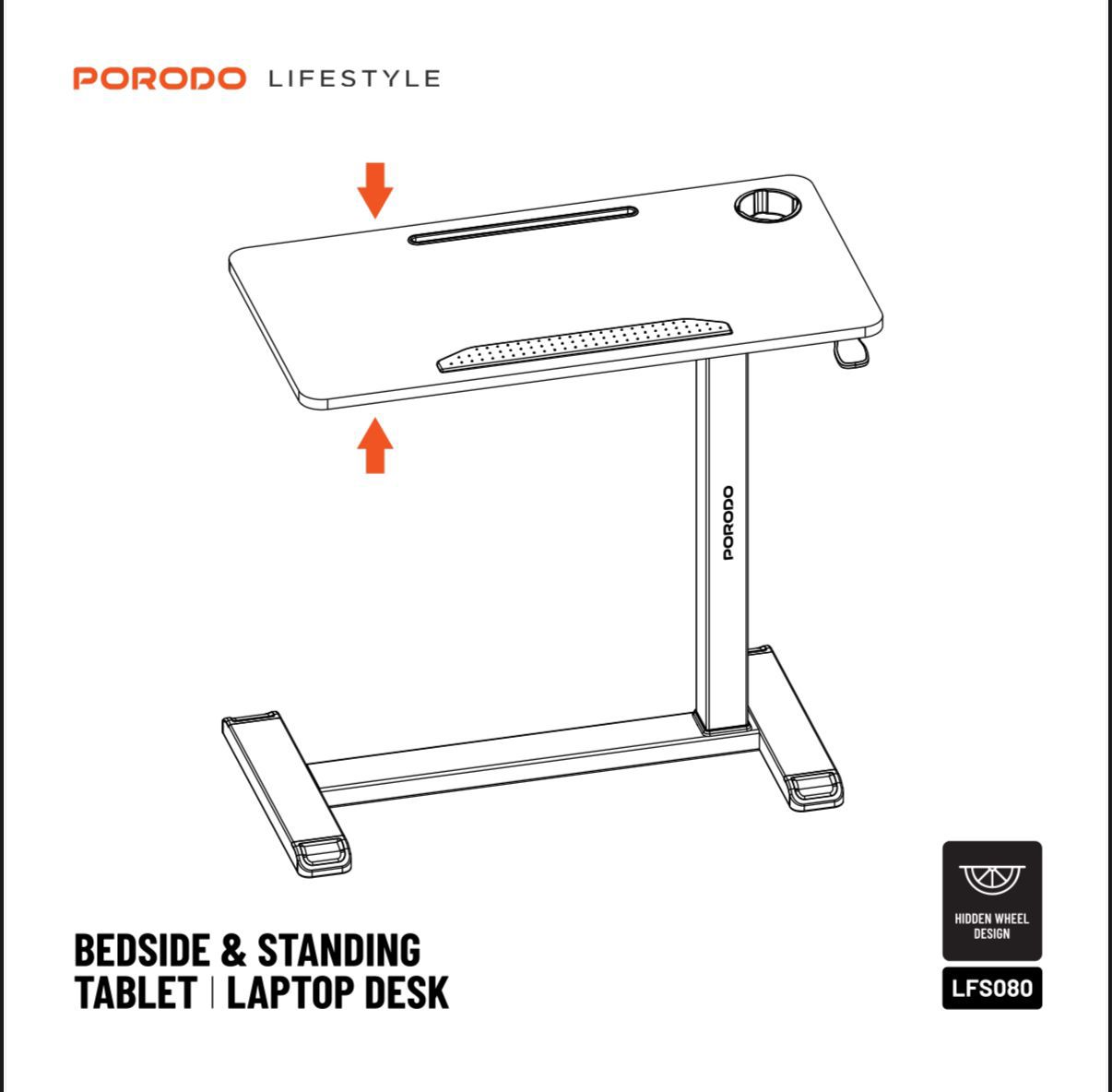 Porodo Lifestyle Bedside & Standing Tablet Laptop Desk – Adjustable Height, Tilt Angle, Cup & Tablet Holder,