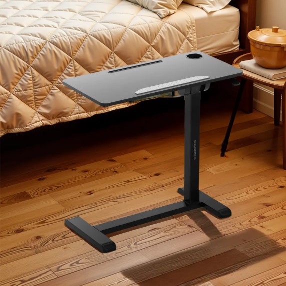 Designed with convenience in mind, the desk includes a cup holder and tablet holder, keeping your essentials within reach. The hidden wheel design ensures easy mobility without compromising aesthetics, making it an ideal bedside laptop table or a mobile laptop table for various settings.