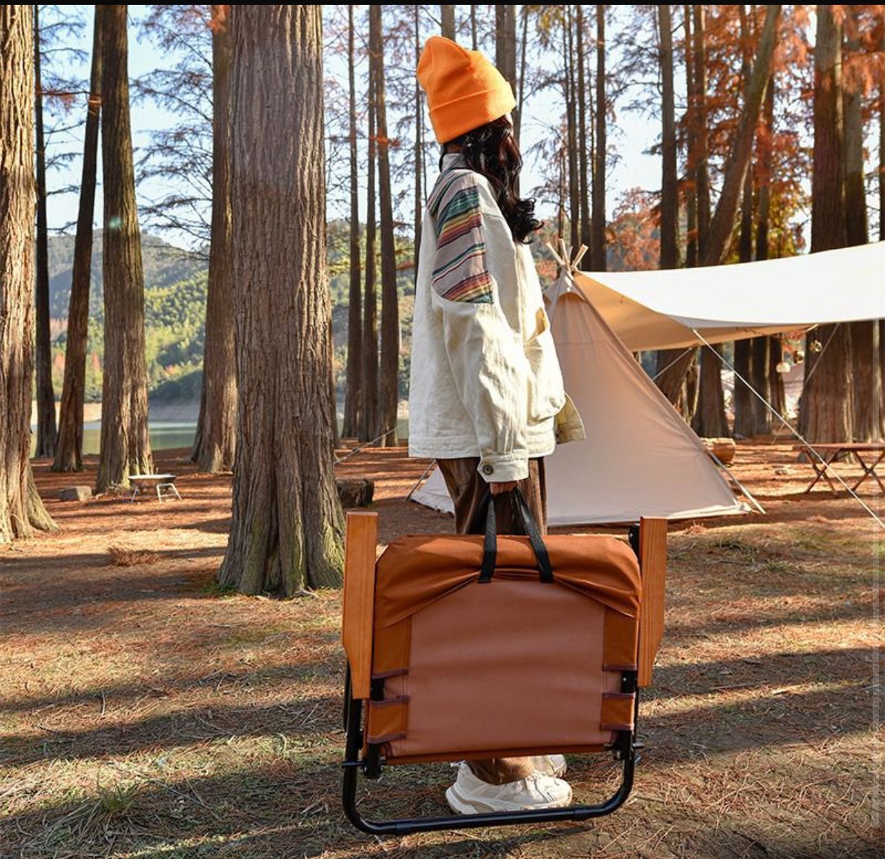Constructed with a robust aluminum frame, the chair supports up to 150kg, ensuring stability for various users. The seat is made from high-quality 600D Oxford cloth, providing both comfort and longevity. The addition of beech wood armrests adds a touch of elegance and natural warmth to the design.
