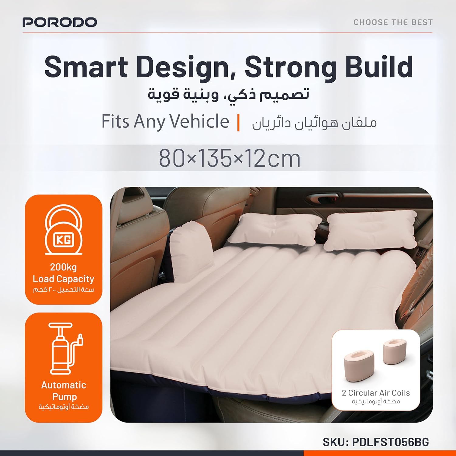 Upgrade your travel comfort with the PORODO Lifestyle Car Mattress LFST056, the perfect car mattress in Oman for long drives, camping, and road trips. Designed for convenience and relaxation, this car mattress in Oman transforms your vehicle into a cozy resting space within minutes.