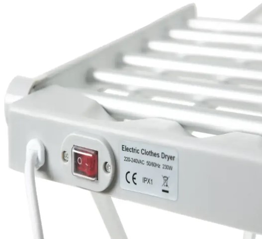 This electric clothes dryer features 20 aluminum heating tubes that ensure even heat distribution, facilitating quick and effective drying. With a 230W power rating, it offers energy-efficient performance, reducing electricity consumption while delivering optimal results.