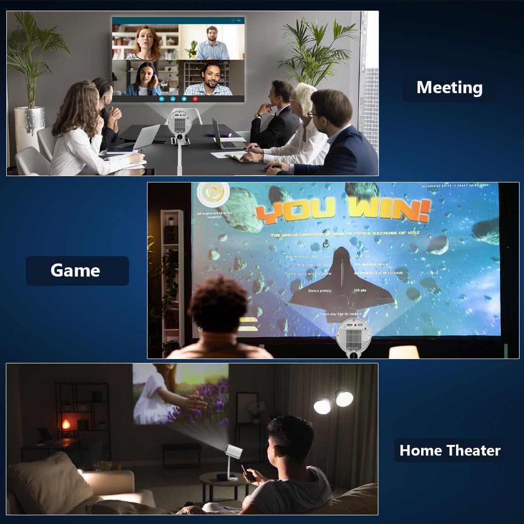 Set up is effortless thanks to the adjustable telescopic stand projector which allows precise angle control, and with wireless screen mirroring, you can display content from your phone, tablet, or laptop instantly. Whether you’re watching late-night films, giving presentations, or gaming with friends, the Smart projector Android 13 delivers smooth performance and flexible connectivity through HDMI, USB-A, Bluetooth, and WiFi.