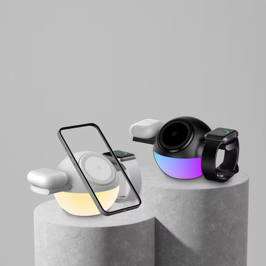 Porodo Orbix 3-in-1 Wireless Charger + Adjustable Ambient Light PDMSWCWH – MagSafe-Compatible Triple Charging Dock