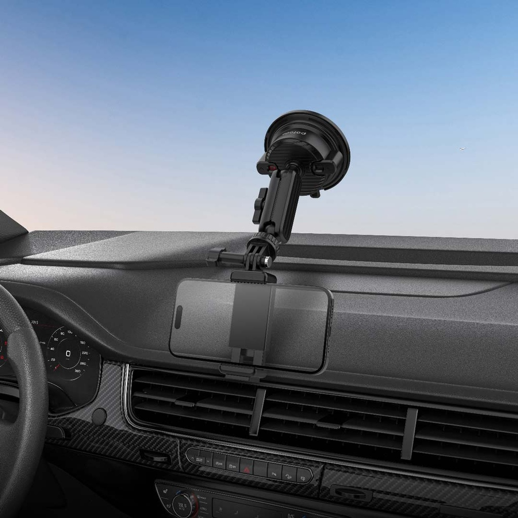 Porodo PD-2N1MCSB-BK 2-in-1 Phone & Camera Mount – 360° Swivel, Double-Layer Suction Base, Reusable Design