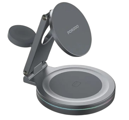 Porodo Rotating Base 3-in-1 Wireless Charger PD-FWCH039 – 15W Fast Charging, Foldable Design, Type-C Input Price In Muscat Oman