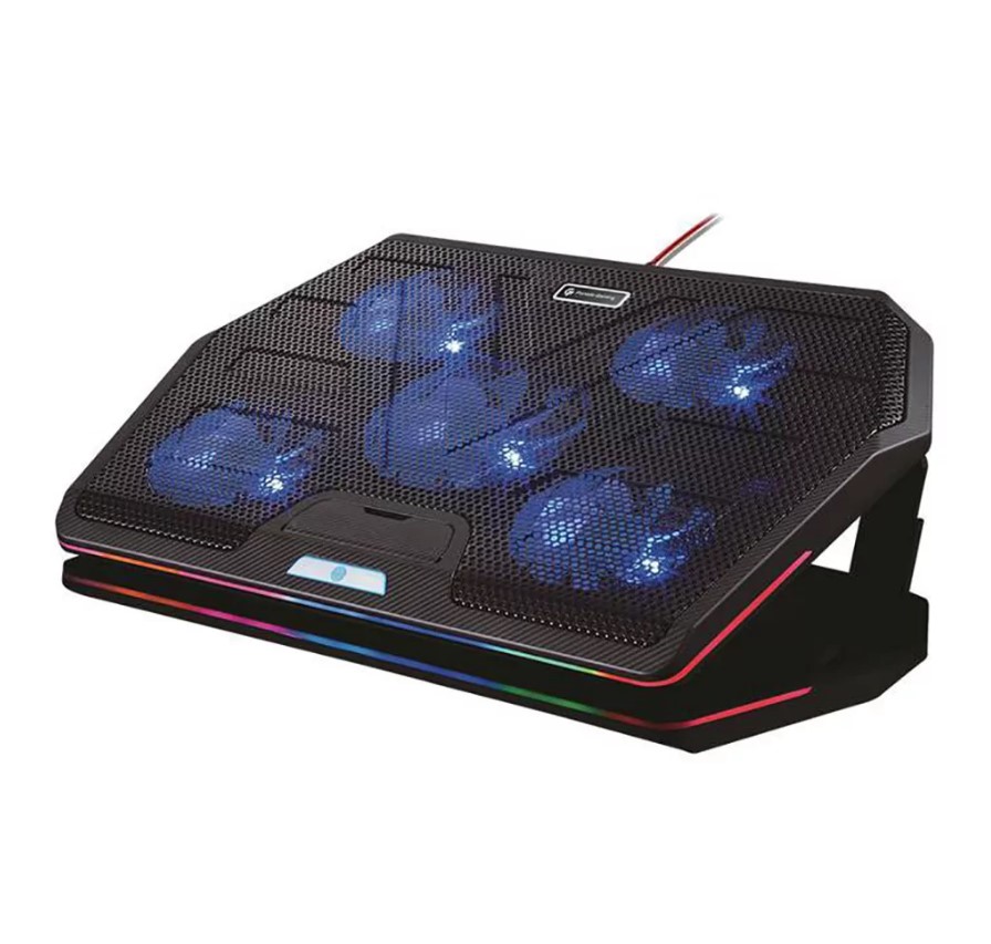 Enhance your gaming experience with the Porodo PDX110 RGB Gaming Laptop Cooling Pad, designed to keep your laptop cool during intense gaming sessions. Featuring 5 super-quiet fans operating at up to 1400 RPM, this cooling pad ensures efficient heat dissipation, preventing overheating and performance throttling. The full steel mesh grill design facilitates optimal airflow, while the 3-level adjustable stand provides ergonomic comfort during use.