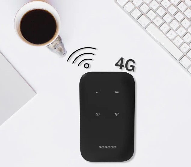 Porodo Pocket 4G LTE Wi‑Fi 6 Router PD‑LFST132 – 150/50 Mbps, 3000 mAh Battery, Supports 10 Devices (Price In Oman)