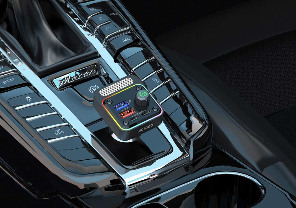 Porodo Quick-Charge FM Car Charger | Dual USB-C & USB-A | PD 36W | Bluetooth 5.3 |