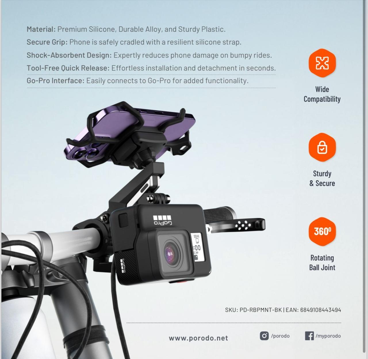 Porodo Shock-Absorption 360° Rotatable Bicycle Phone Mount with GoPro Interface (PD-RBPMNT-BK)