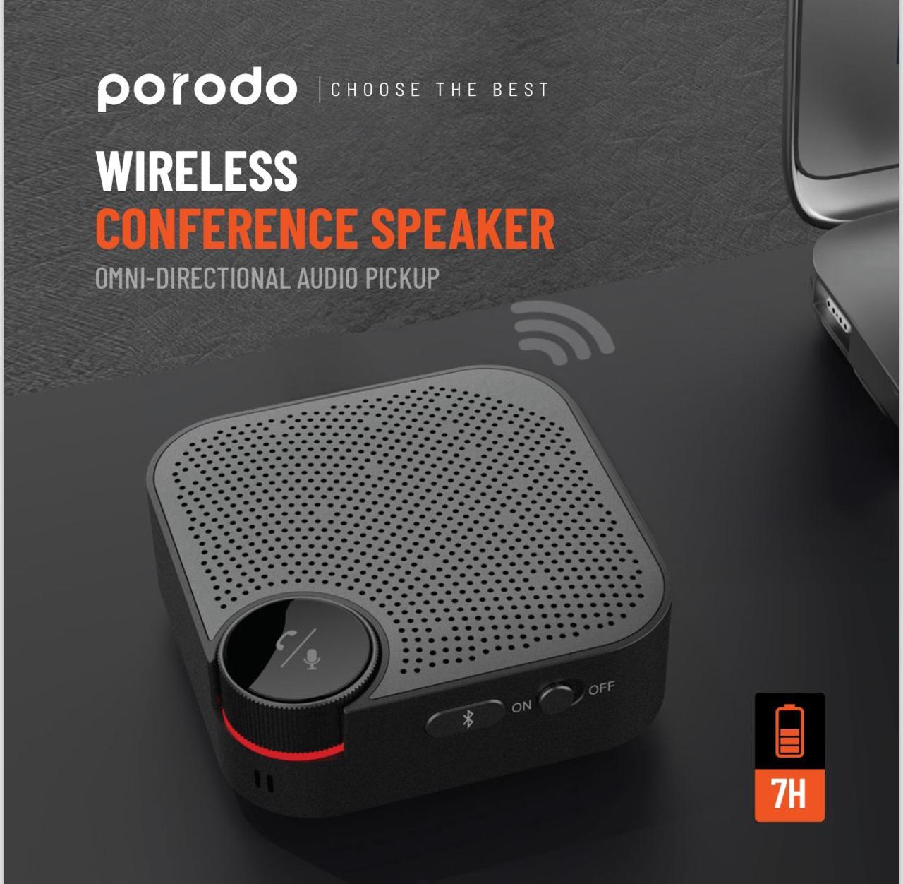 Porodo Wireless Conference Speaker PD-BCNFS – Bluetooth 5.3, Omni-Directional Mic, 800mAh Battery, 3m Mic Coverage, USB-C, Plug & Play –