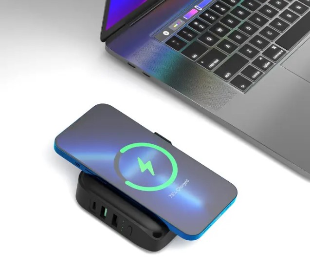 Equipped with MagSafe technology, it offers secure and efficient wireless charging for compatible devices. The 10000mAh capacity provides ample power to charge your smartphone multiple times, making it ideal for travel and daily use.