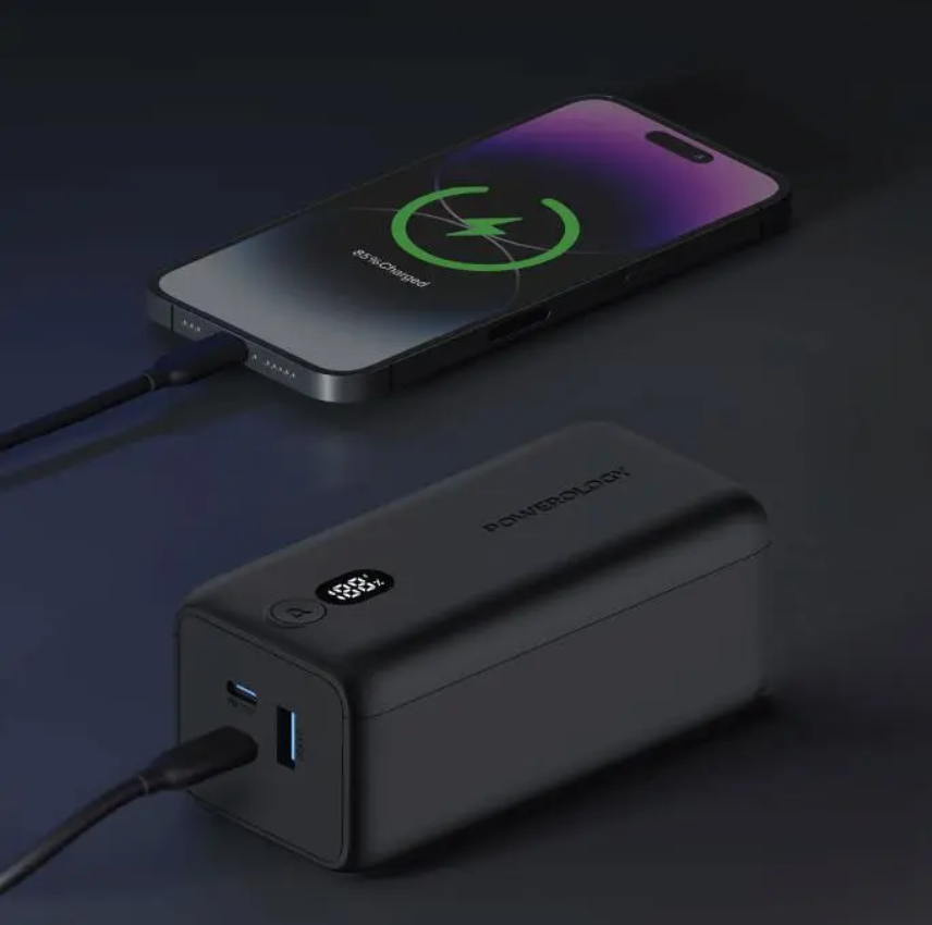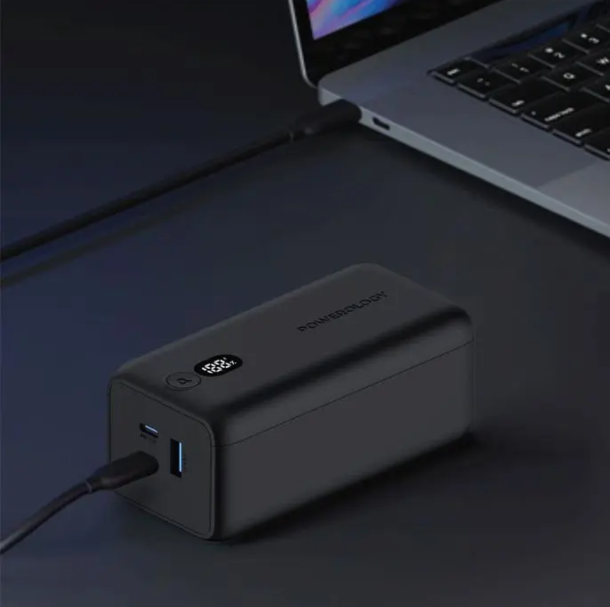 Powerology Onyx 20000mAh (PPBCHA19) — 65W Dual USB-C Power Bank, LED Display, Fast-Charge Laptop & Multi-Device Portable Charger (Black)