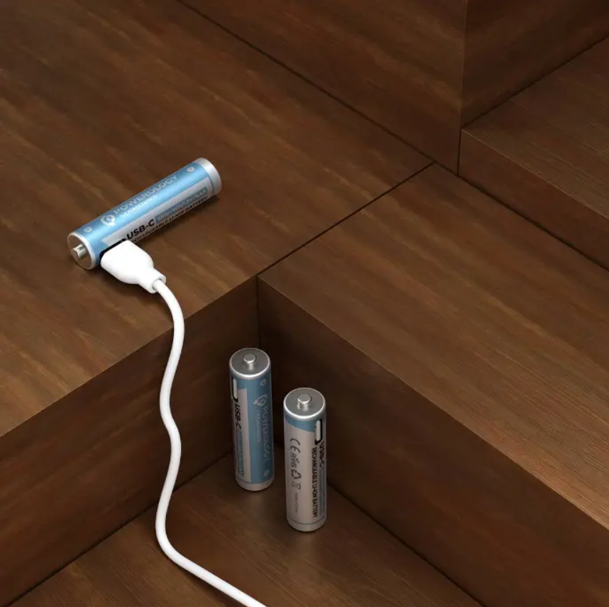 Powerology PAA V2RBT USB-Rechargeable AAA Battery Pack (4 pcs) – 1.5 V Lithium-Ion, 450 mAh, USB-C Charging (Price In Oman)